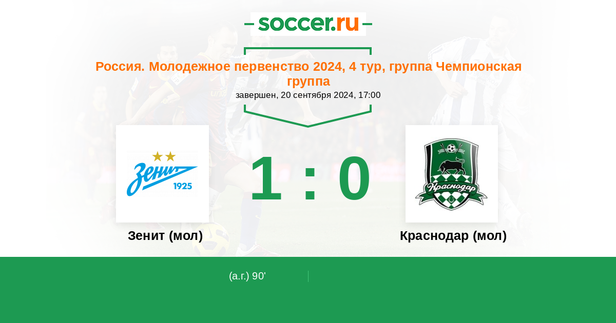 Протокол матча Зенит (мол) против Краснодар (мол)