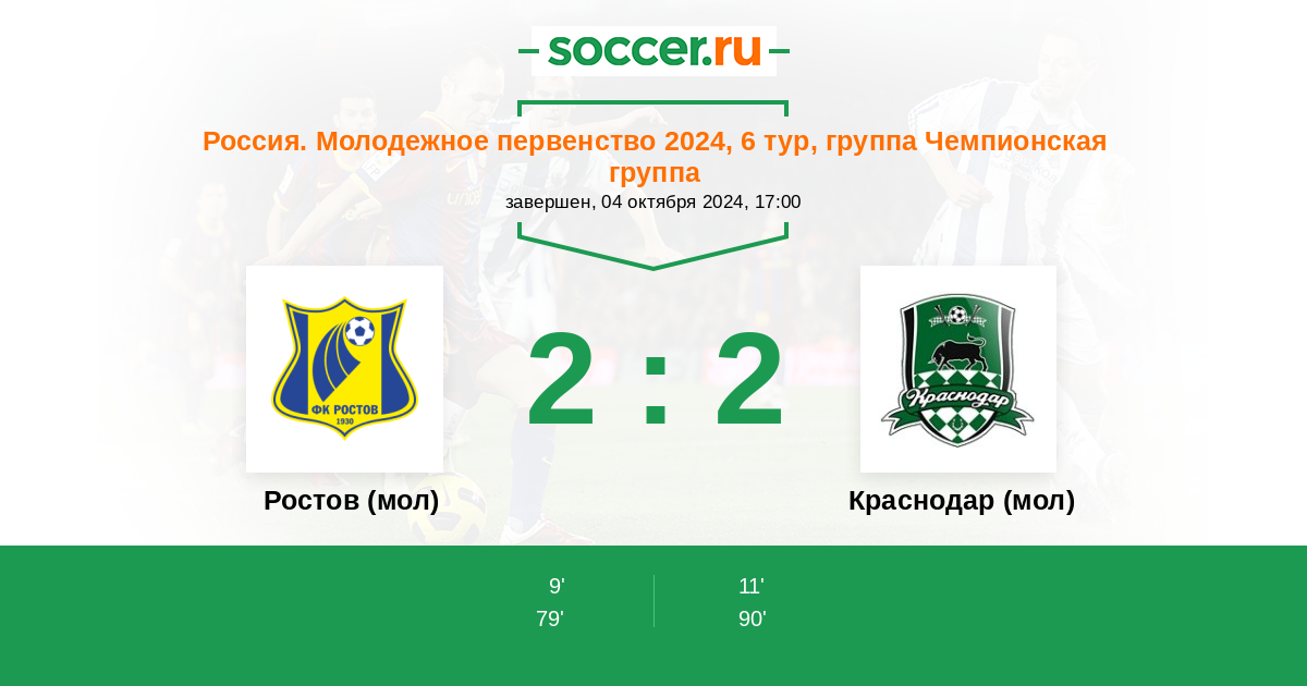 Протокол матча Ростов (мол) против Краснодар (мол)