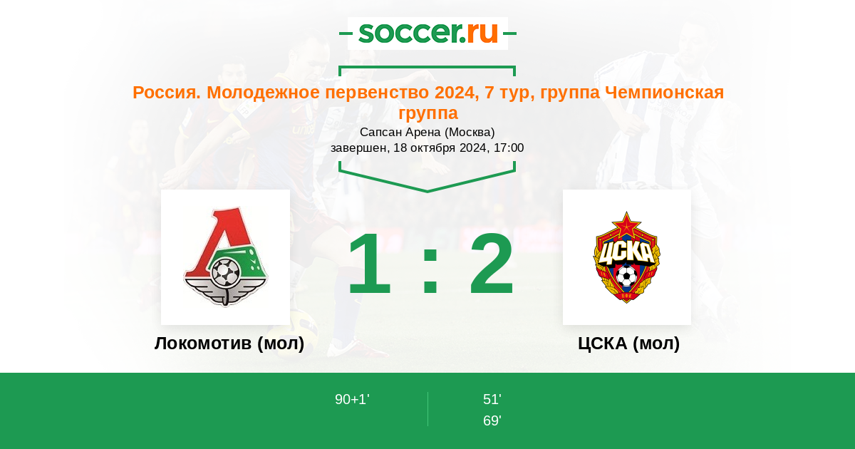 Протокол матча Локомотив (мол) против ЦСКА (мол)