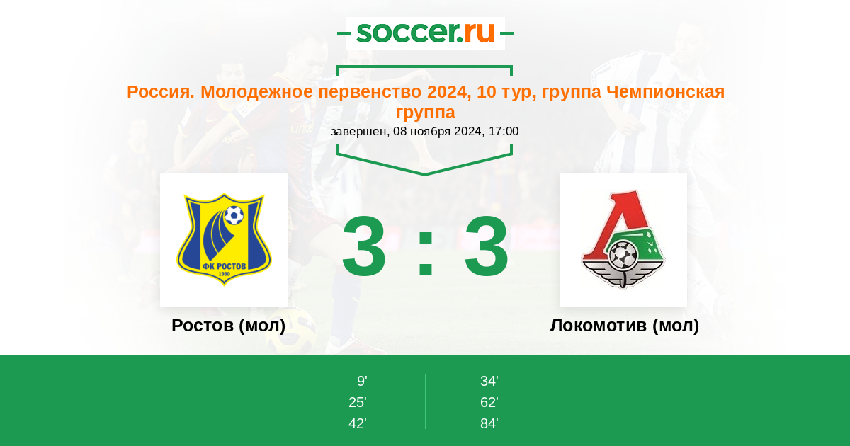 Протокол матча Ростов (мол) против Локомотив (мол)