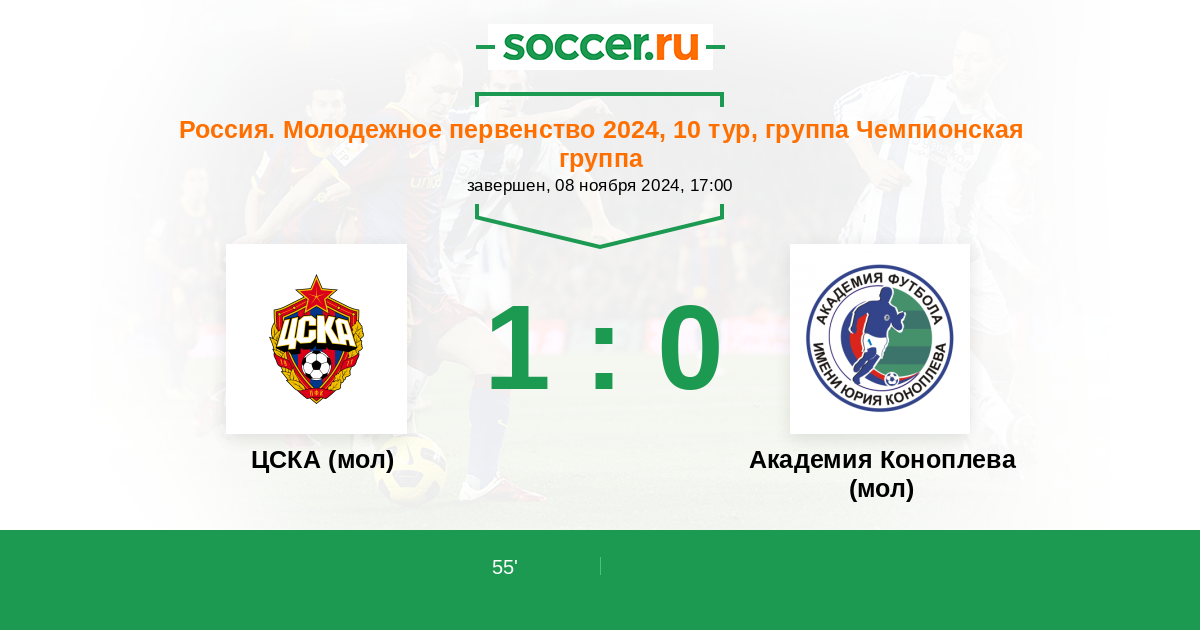 Протокол матча ЦСКА (мол) против Академия Коноплева (мол)