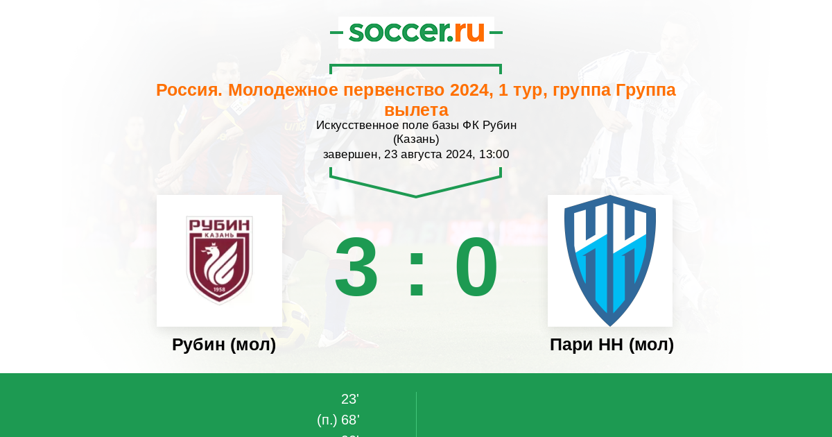 Протокол матча Рубин (мол) против Пари НН (мол)