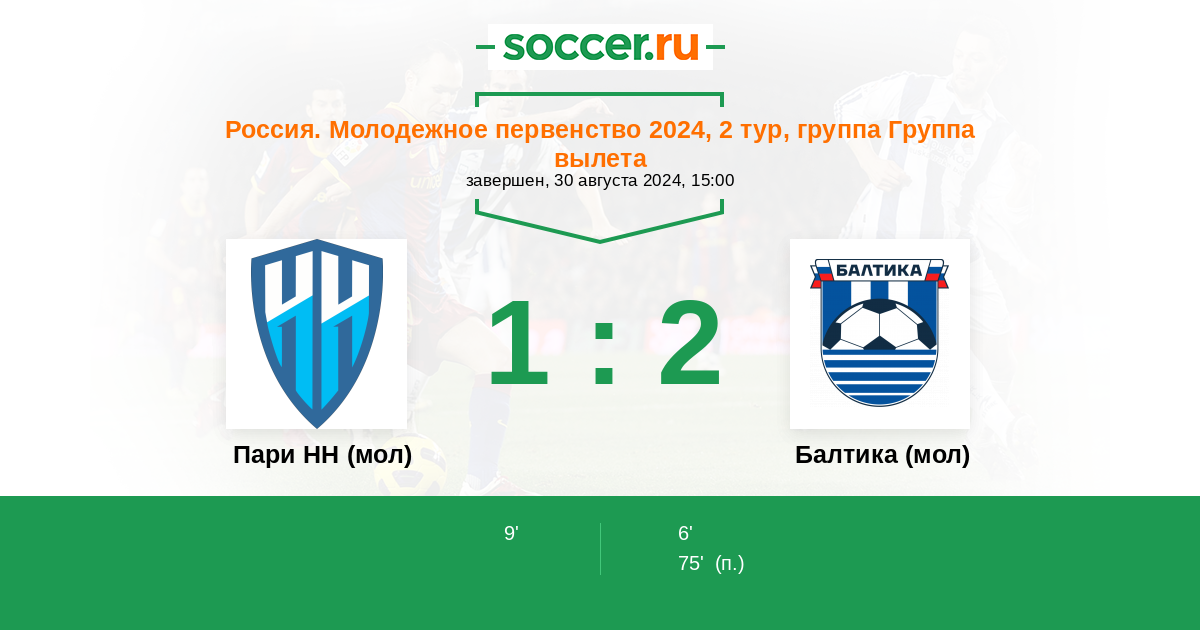 Протокол матча Пари НН (мол) против Балтика (мол)