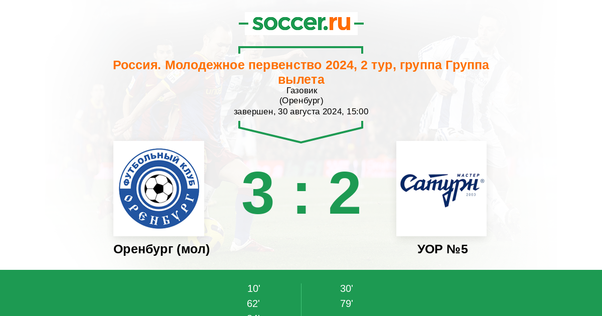 Протокол матча Оренбург (мол) против УОР №5