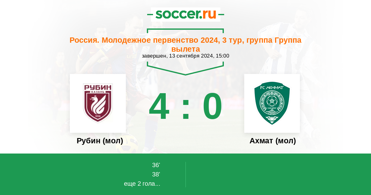 Протокол матча Рубин (мол) против Ахмат (мол)
