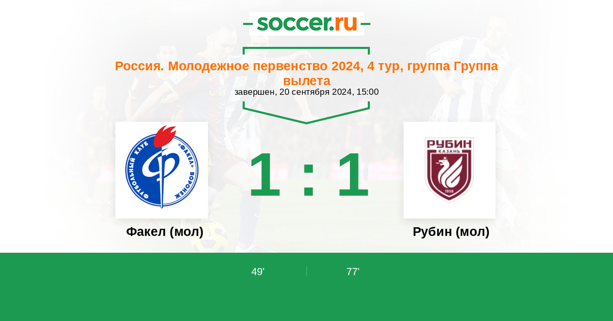 Протокол матча Факел (мол) против Рубин (мол)