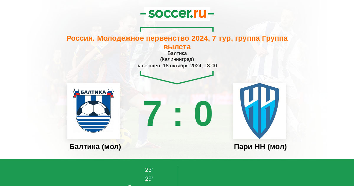 Протокол матча Балтика (мол) против Пари НН (мол)