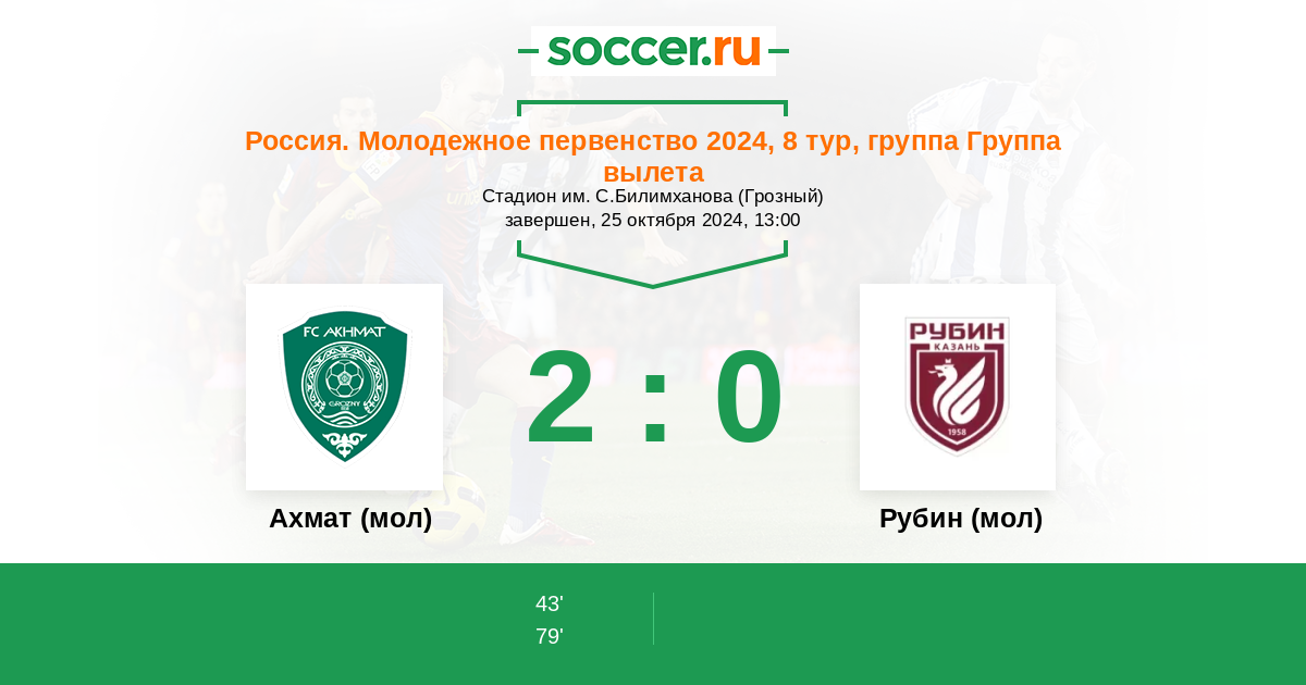 Протокол матча Ахмат (мол) против Рубин (мол)