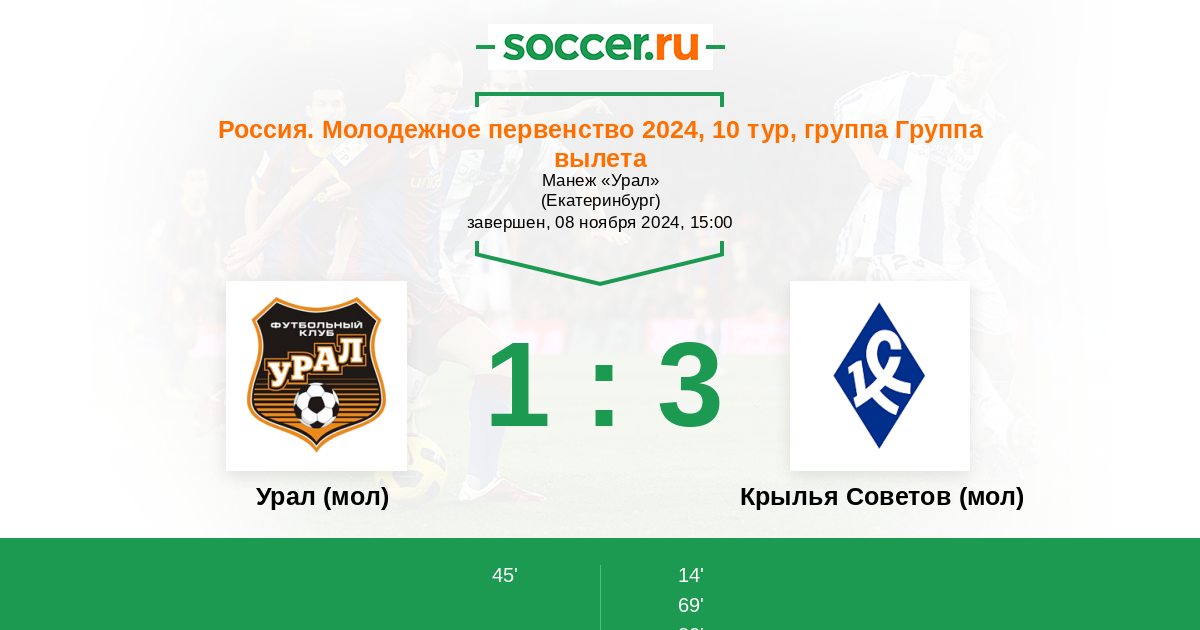 Протокол матча Урал (мол) против Крылья Советов (мол)