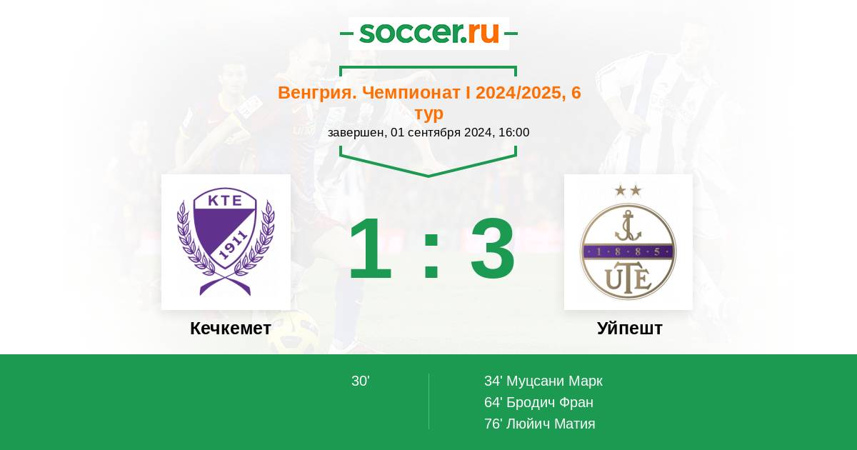 Протокол матча Кечкемет против Уйпешт