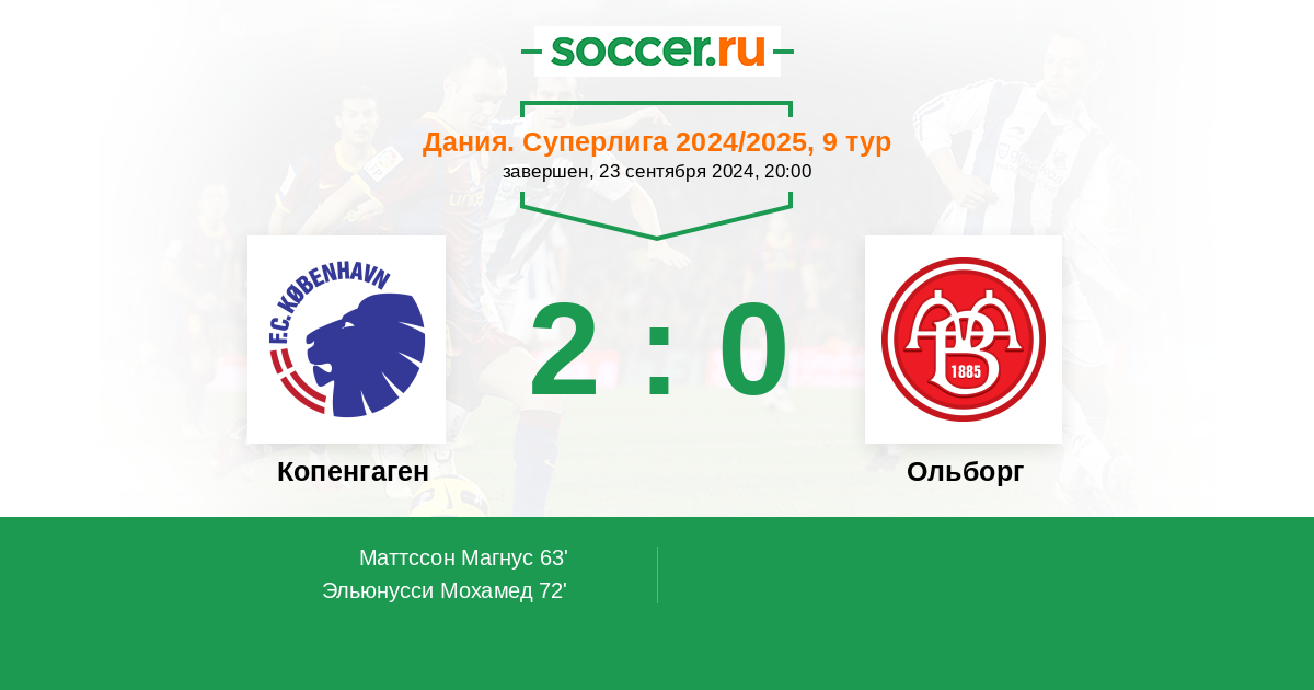 Протокол матча Копенгаген против Ольборг