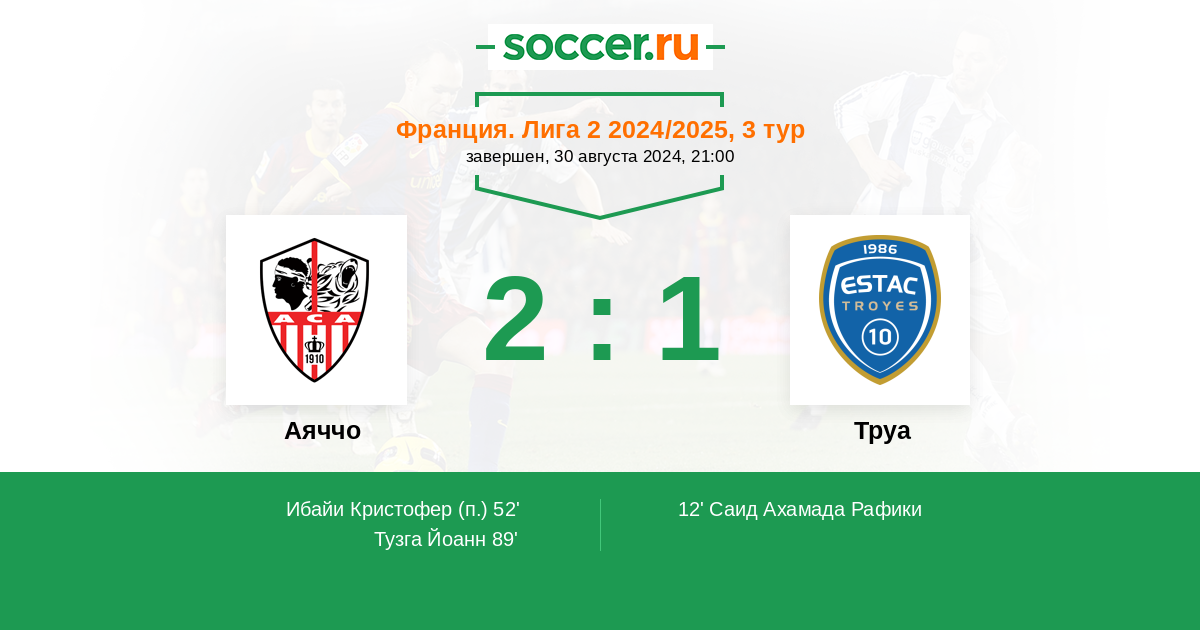 Протокол матча Аяччо против Труа