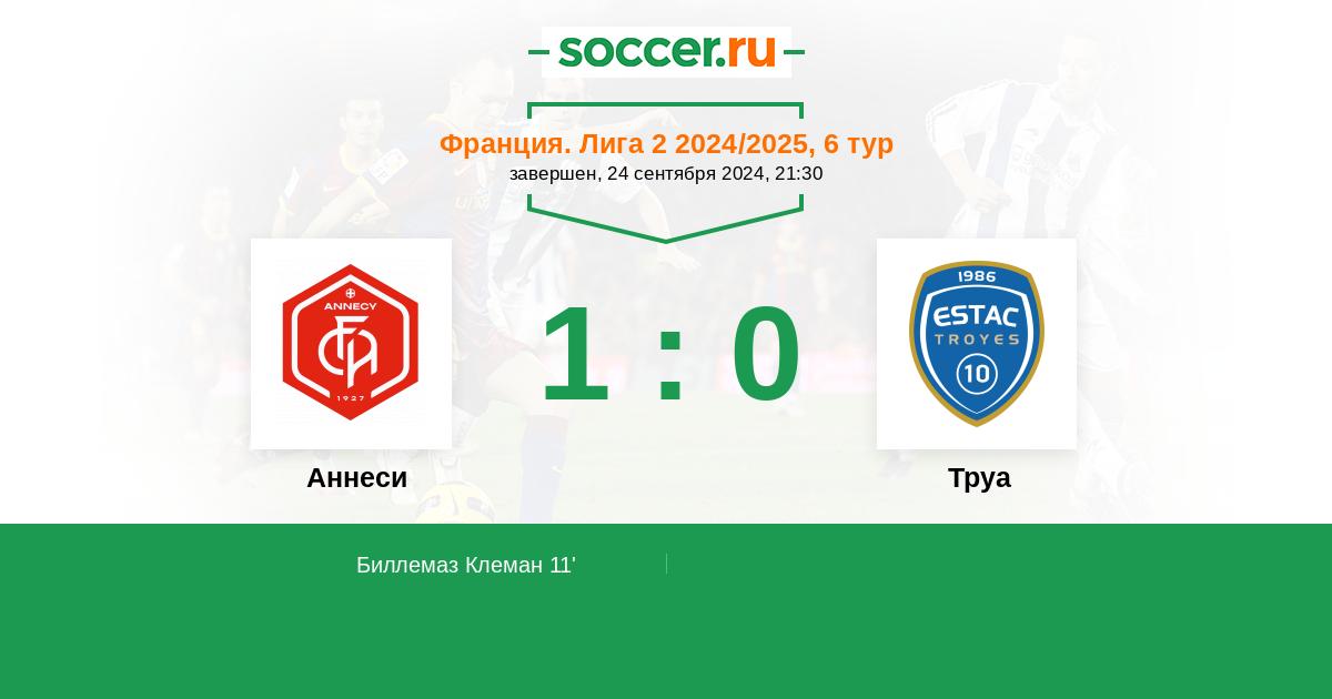 11' (1:0) Биллемаз Клеман (22) (Джоко Капит (10))