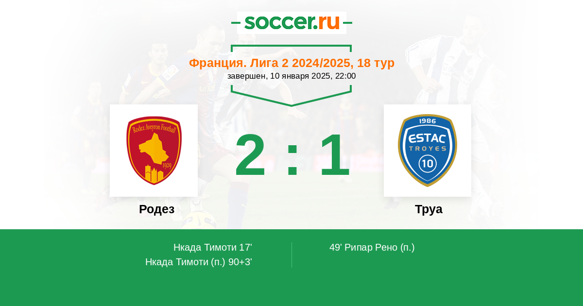 Протокол матча Родез против Труа
