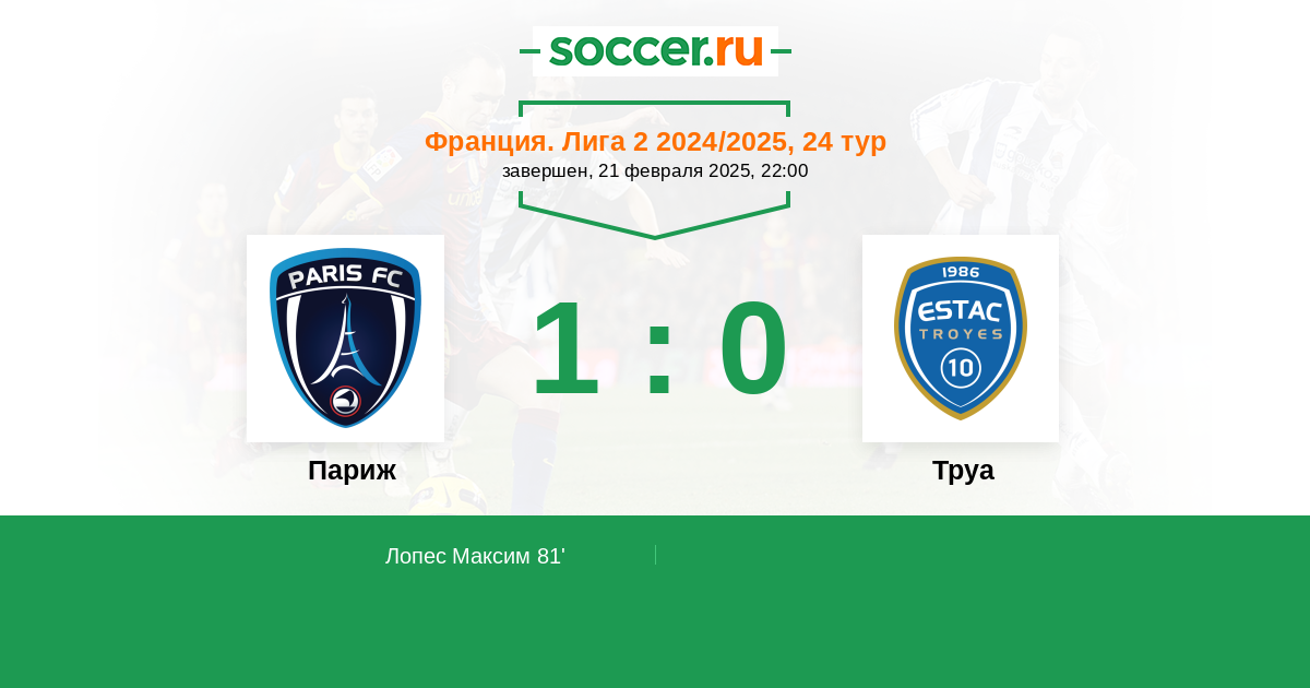Протокол матча Париж против Труа