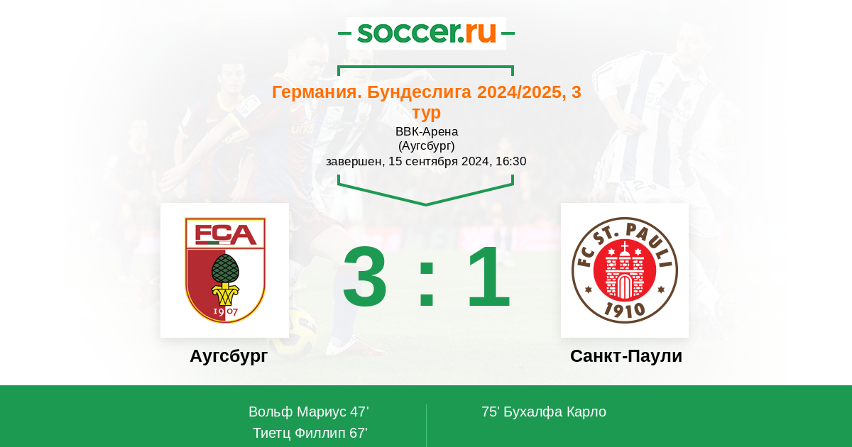 Протокол матча Аугсбург против Санкт-Паули