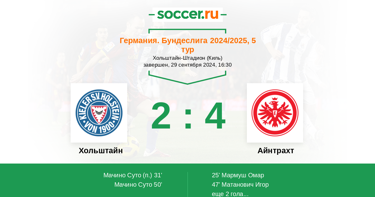Протокол матча Хольштайн против Айнтрахт