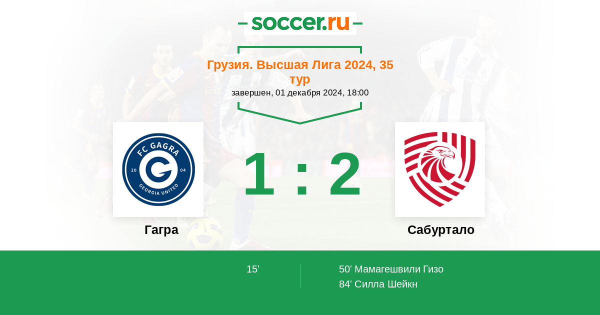 84' (1:2) Силла Шейкн (9) (Мамагешвили Гизо (11))