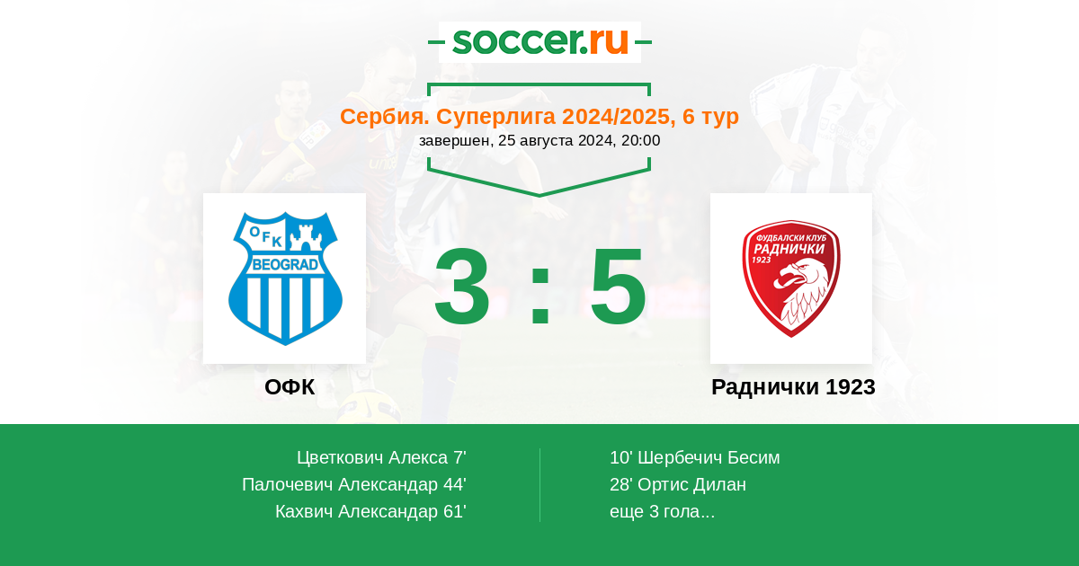 Протокол матча ОФК против Раднички 1923