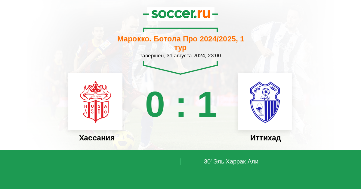 30' (0:1) Эль Харрак Али (30)