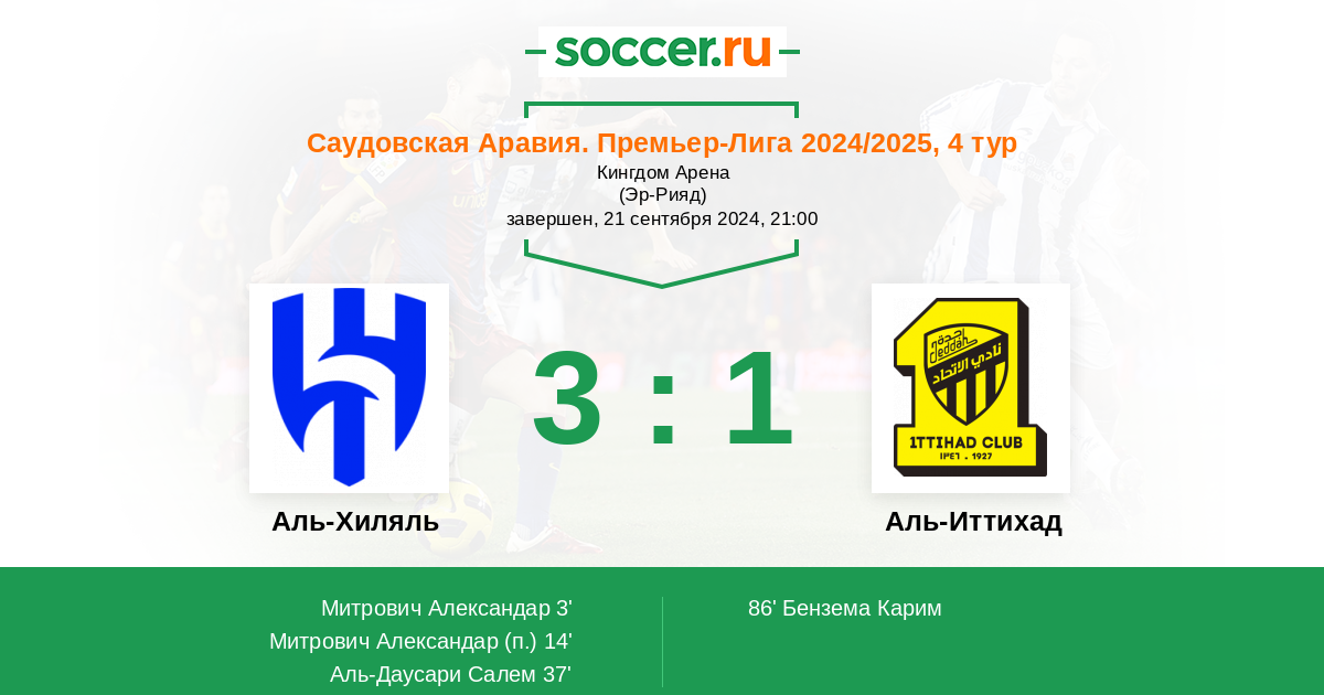Протокол матча Аль-Хиляль против Аль-Иттихад