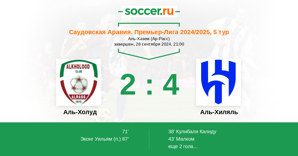 Протокол матча Аль-Холуд против Аль-Хиляль