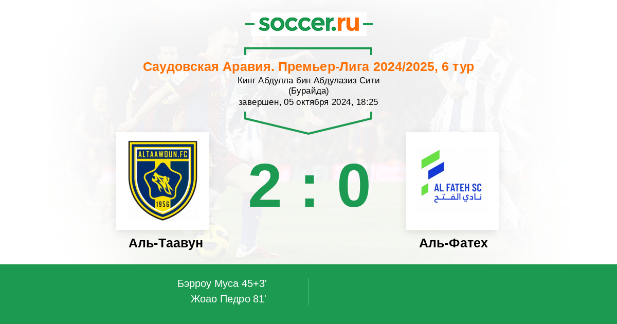 Протокол матча Аль-Таавун против Аль-Фатех