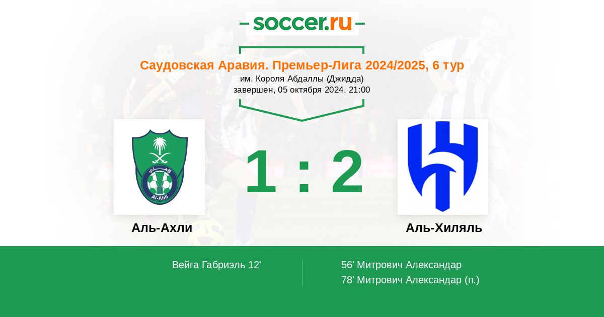 Протокол матча Аль-Ахли против Аль-Хиляль