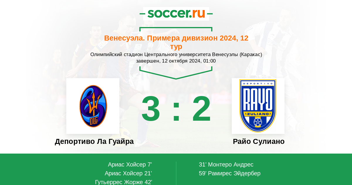 Протокол матча Депортиво Ла Гуайра против Райо Зулиано
