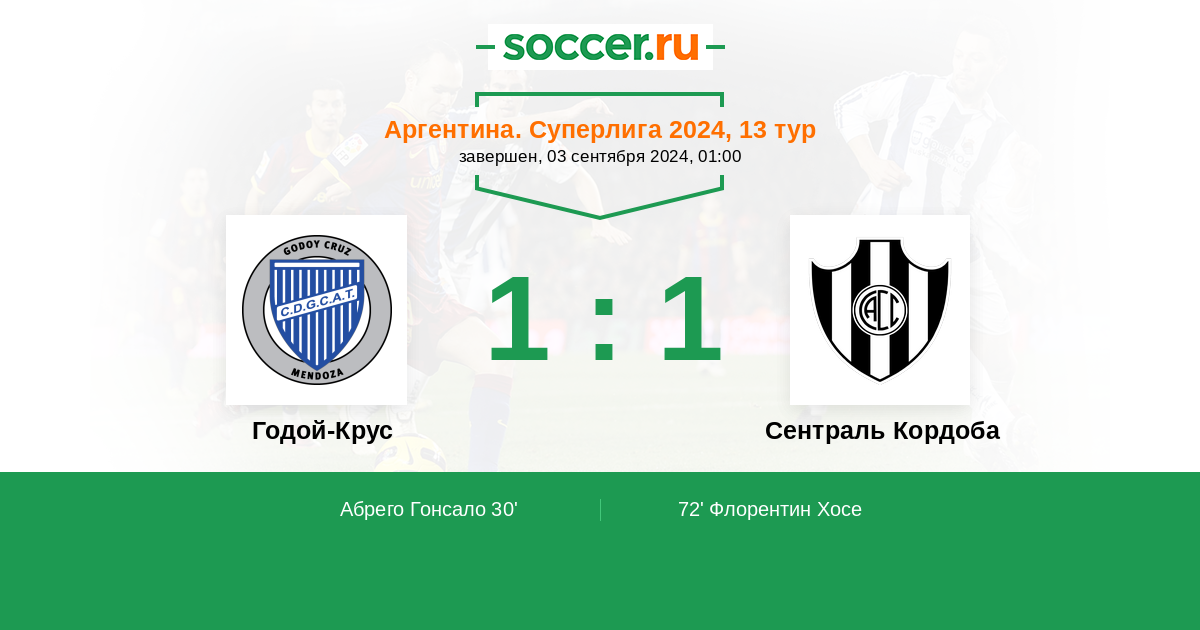 Протокол матча Годой-Крус против Сентраль Кордоба