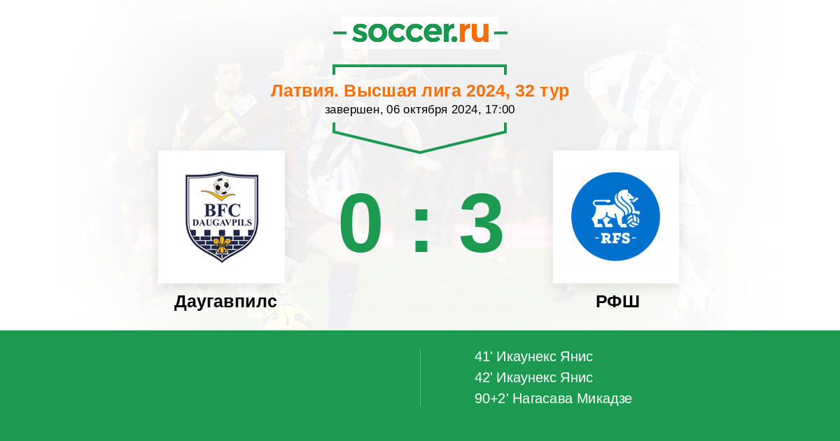 Протокол матча Даугавпилс против РФШ