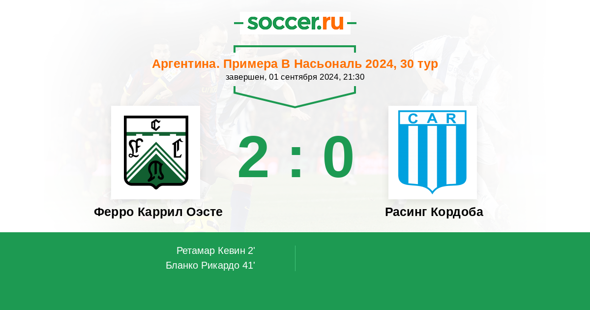 Протокол матча Ферро Каррил Оэсте против Расинг Кордоба