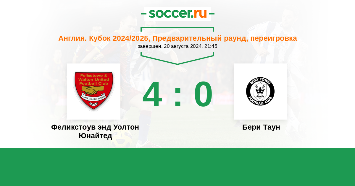 История матча Феликстоув энд Уолтон Юнайтед против Бери Таун