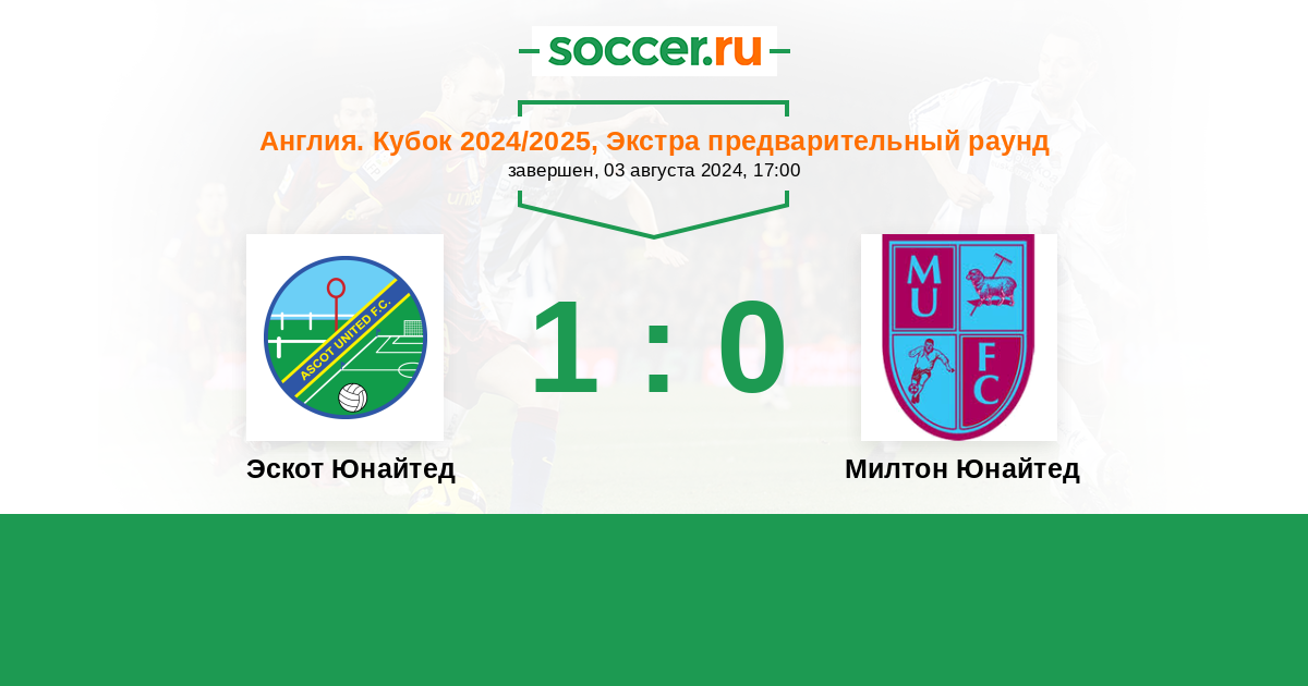 История матча Эскот Юнайтед против Милтон Юнайтед