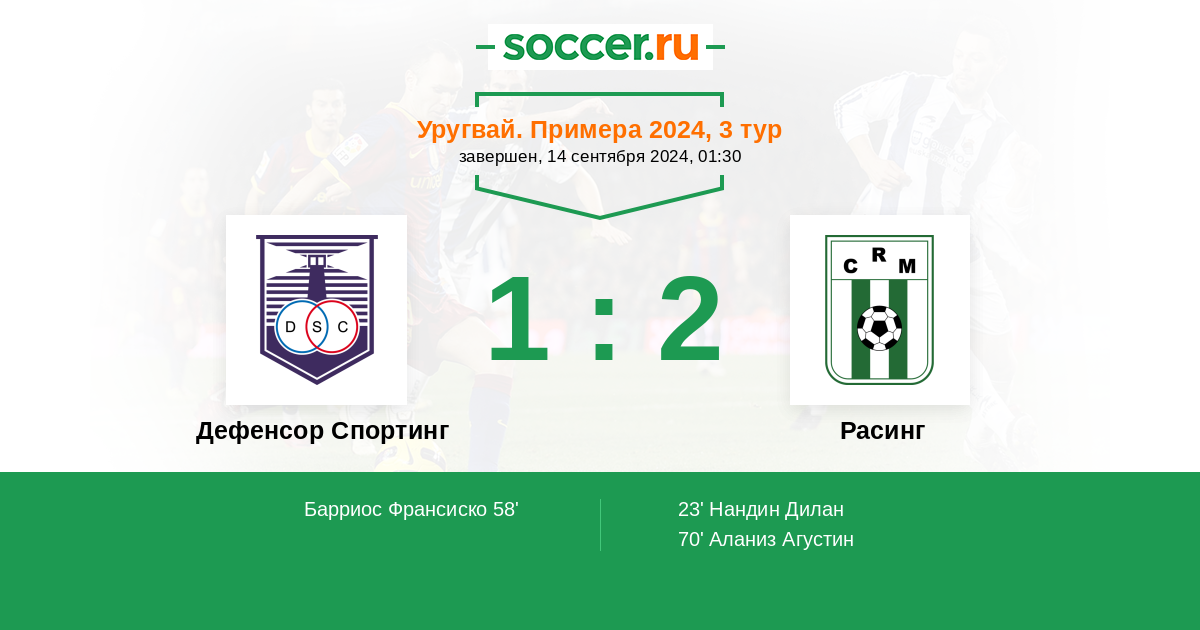 Протокол матча Дефенсор Спортинг против Расинг