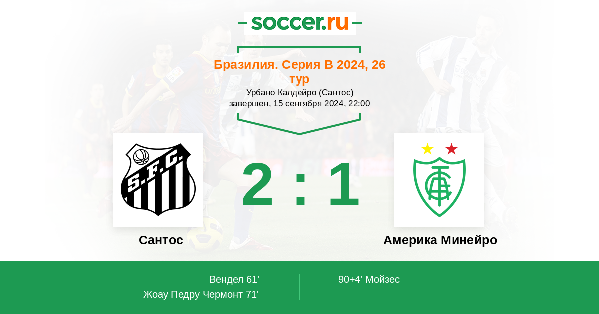 Протокол матча Сантос против Америка Минейро
