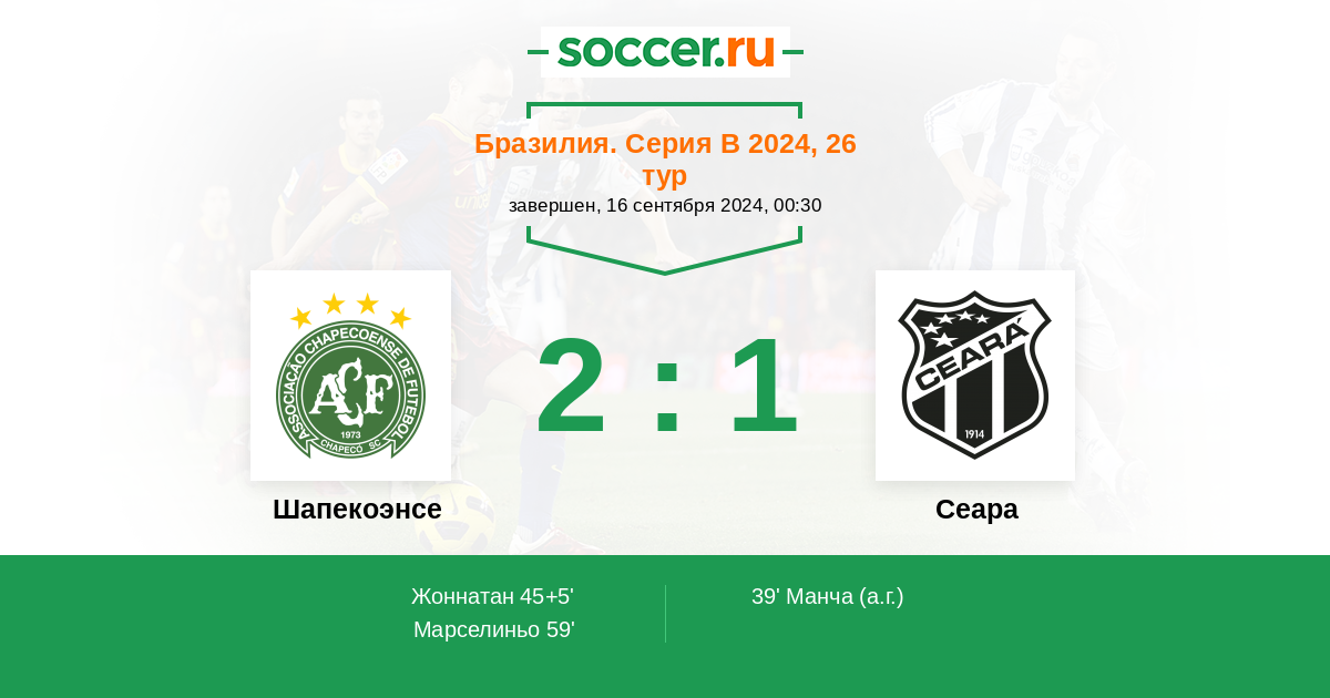 Гол45+5' (1:1) Жоннатан (32) (Марсиньо (7))
