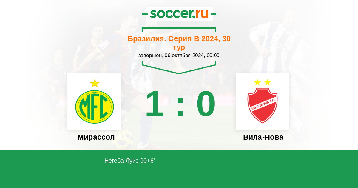 Протокол матча Мирассол против Вила-Нова