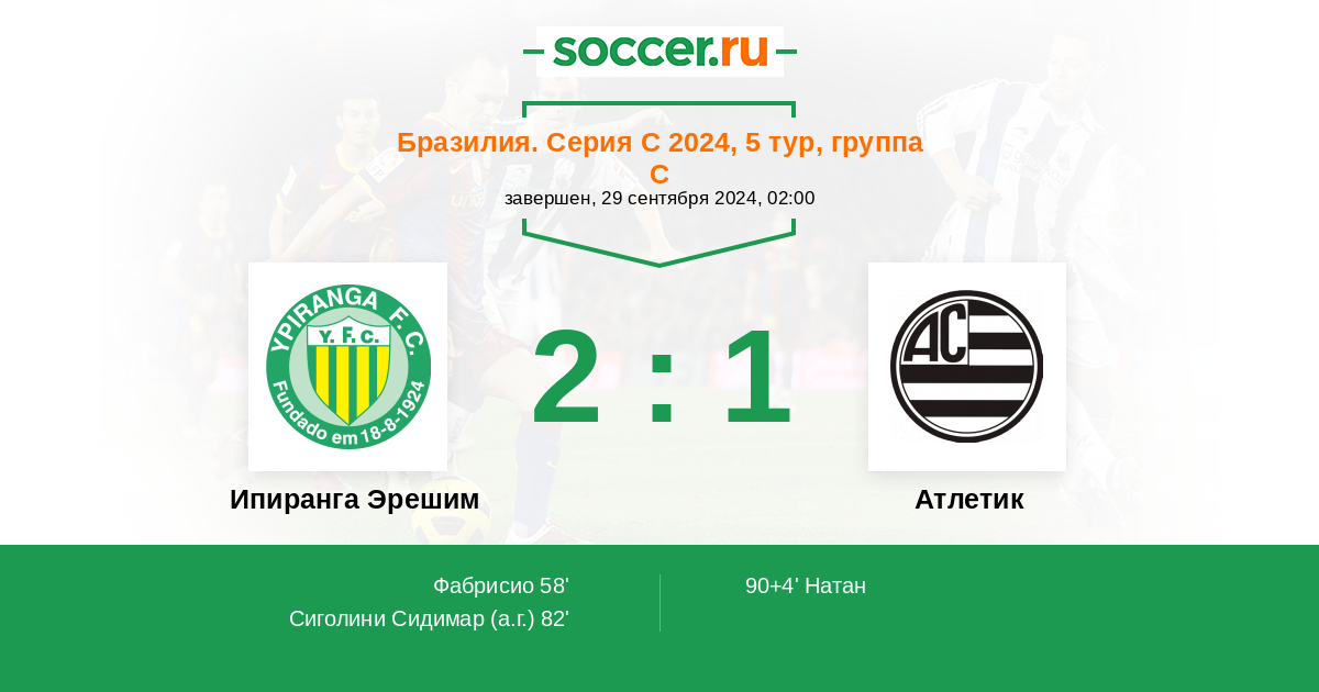 Протокол матча Ипиранга Эрешим против Атлетик