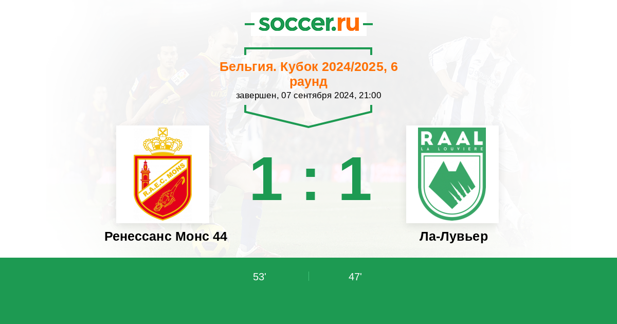 Протокол матча Ренессанс Монс 44 против Ла-Лувьер