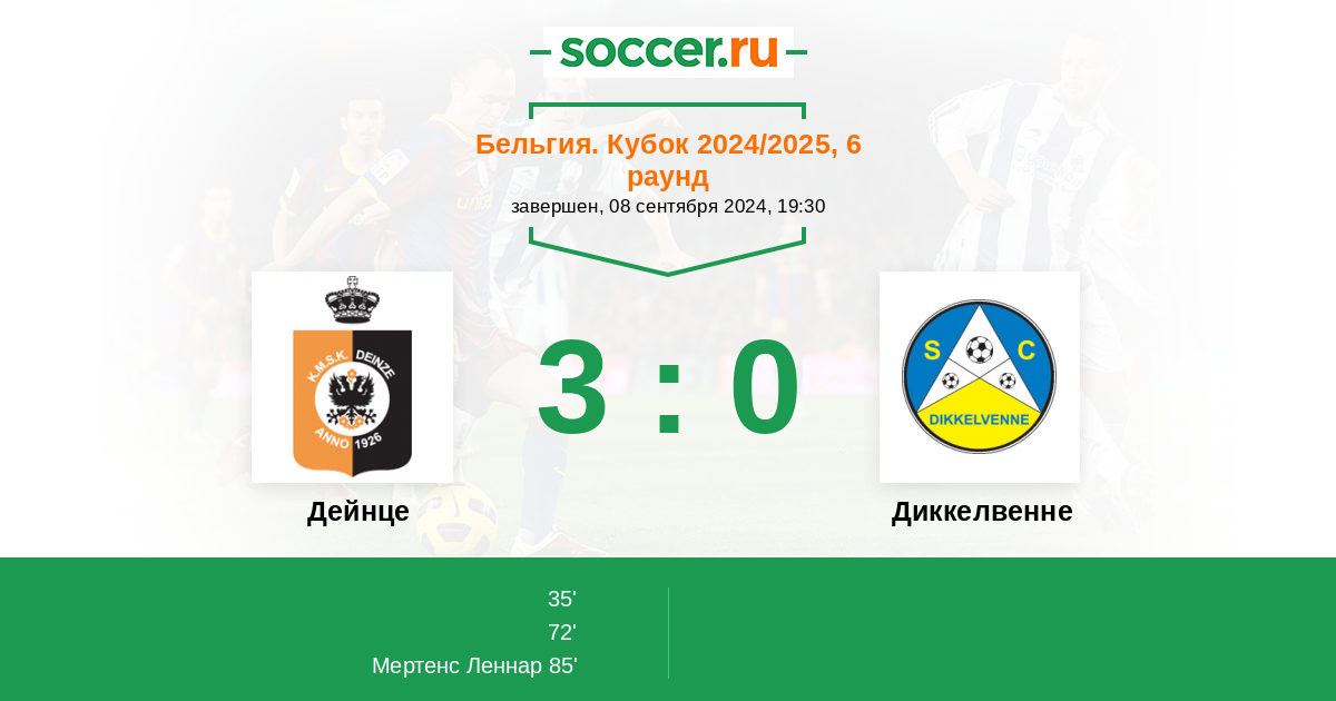 Протокол матча Дейнце против Диккелвенне