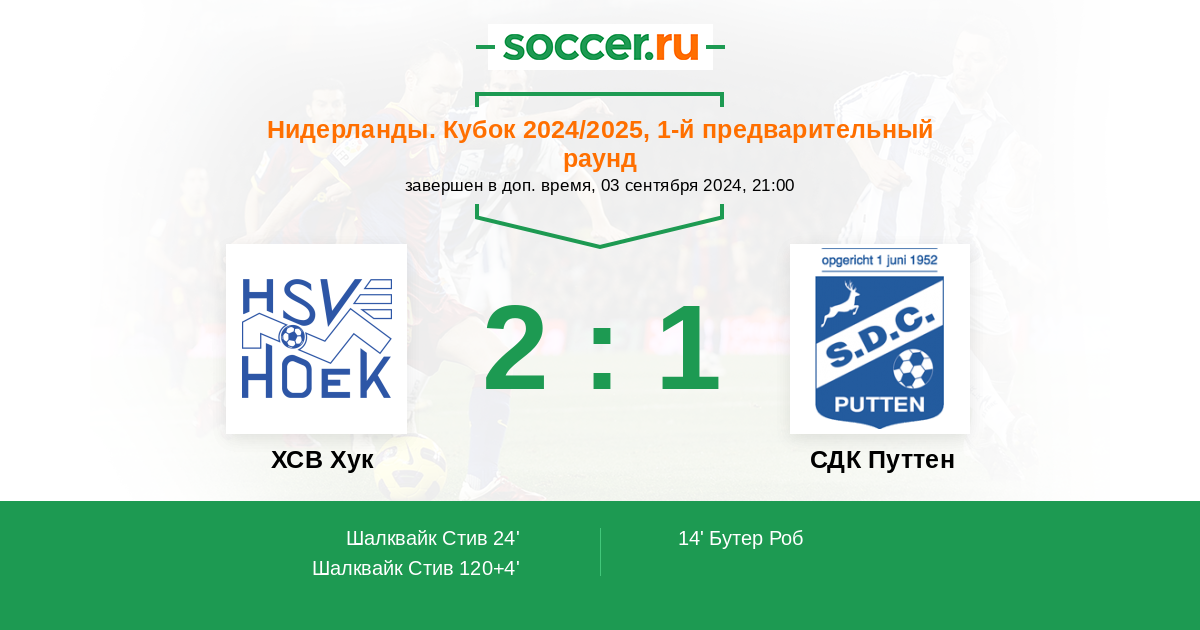 Протокол матча ХСВ Хук против СДК Путтен
