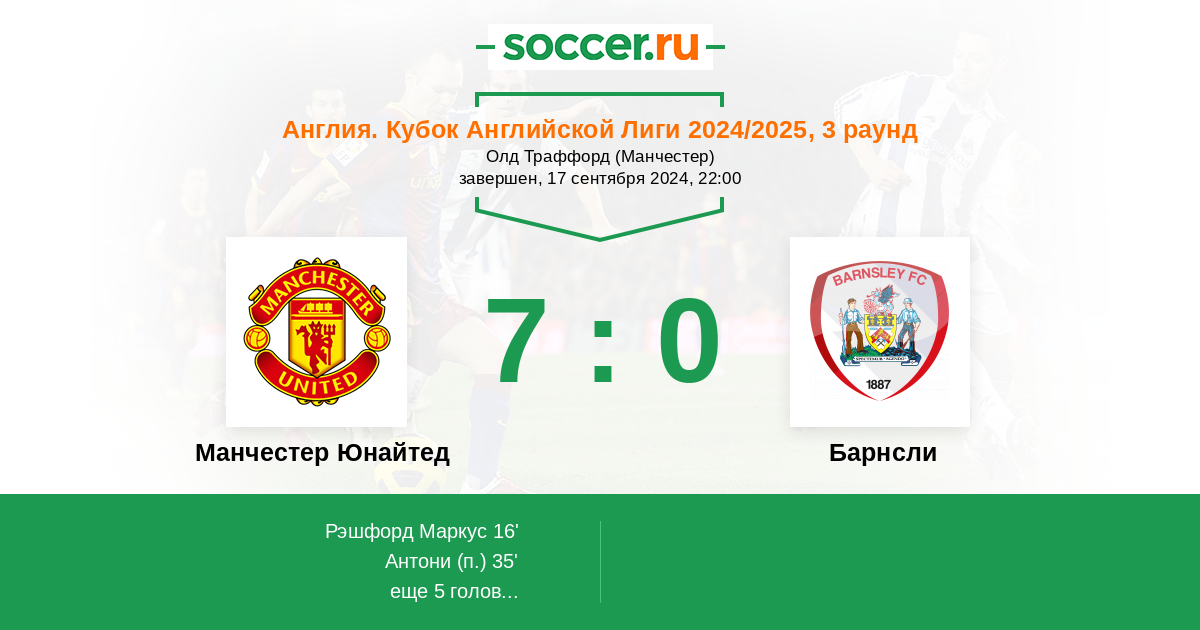 Протокол матча Манчестер Юнайтед против Барнсли