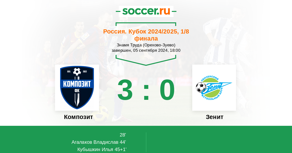 Протокол матча Композит против Зенит