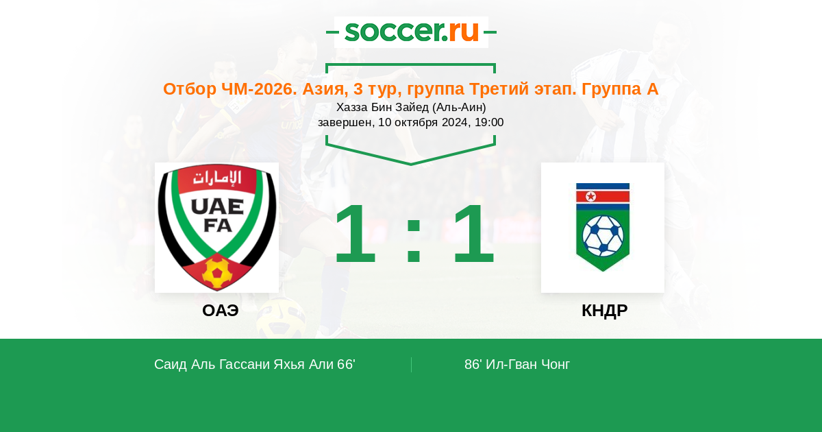 86' (1:1) Ил-Гван Чонг (11) (Чо Ок-Чол (14))