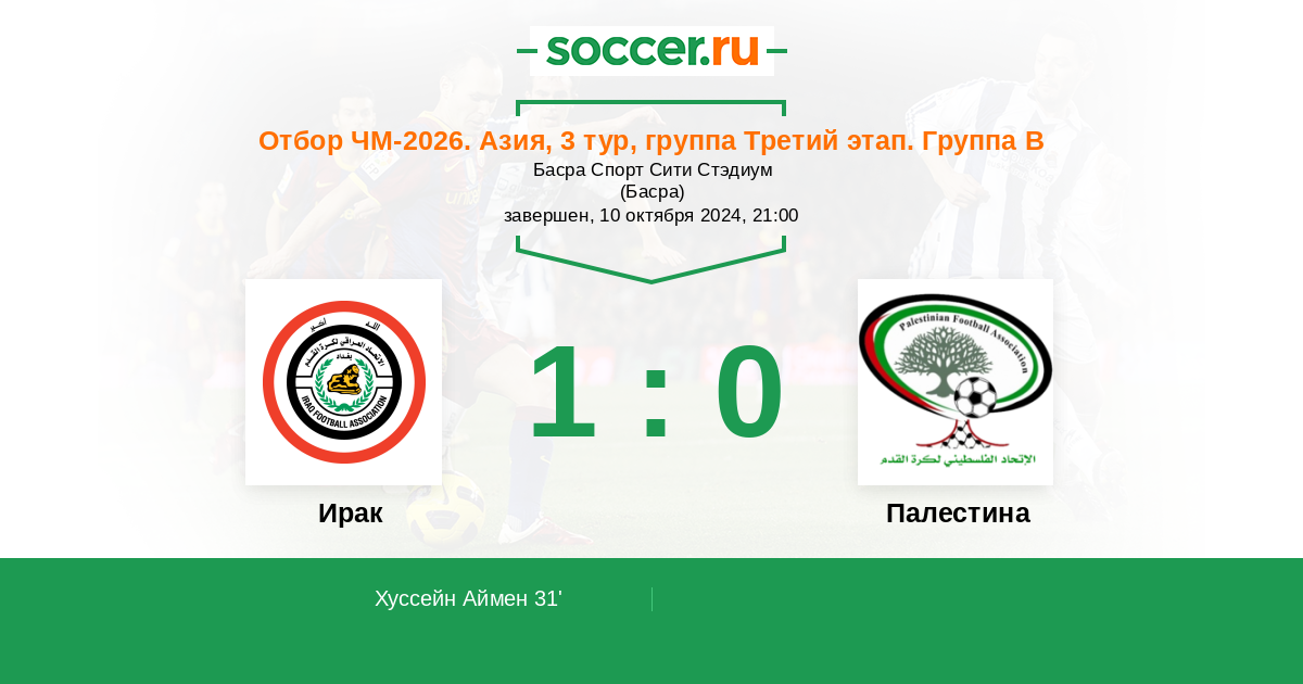 Ирак допустил осечку с Кувейтом. Но у команды есть оправдание, ведь один из ее футболистов в той игре получил прямую красную карточку уже на седьмой минуте. Палестина – сборная с весьма ограниченными возможностями и вряд ли будет претендовать на продолжение борьбы.