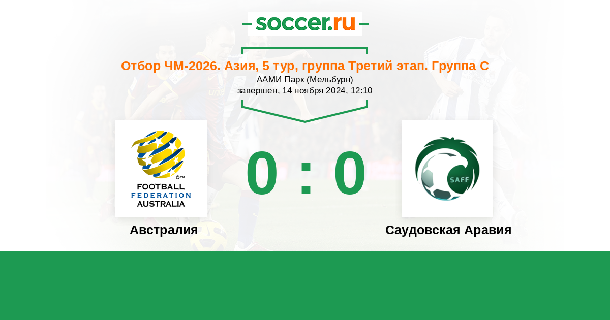 Команда хозяев выглядит фаворитом этого матча за счёт фактора родных стен, имеет достаточно много шансов одержать победу над сборной Саудовской Аравии и вряд ли позволит гостям сохранить свои ворота в неприкосновенности