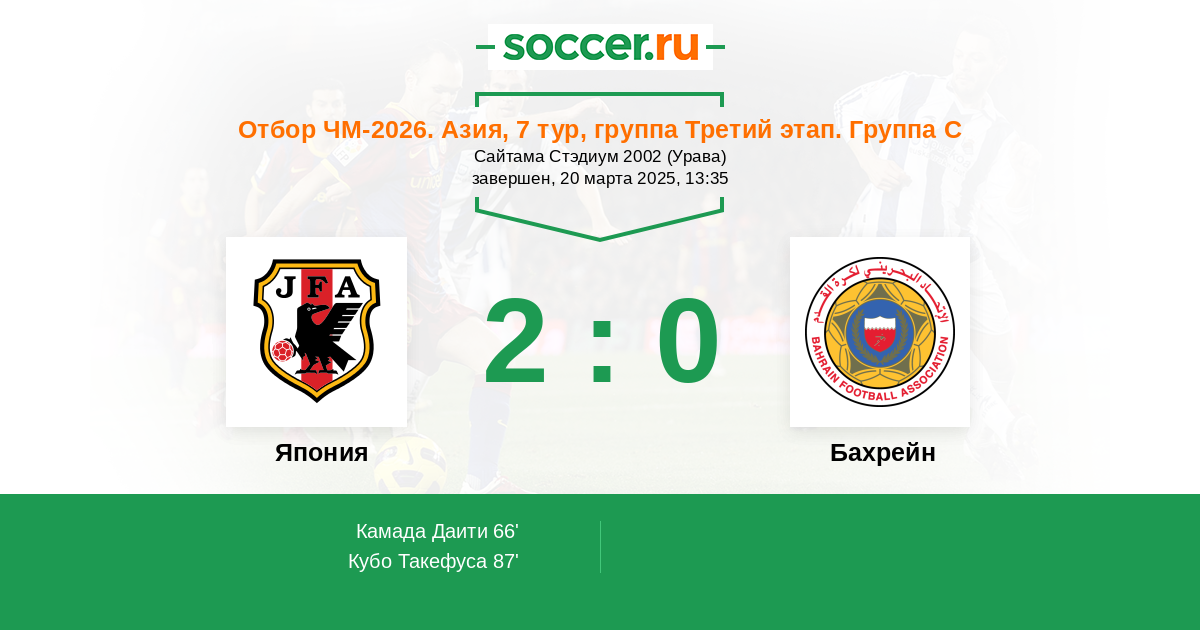 В предстоящем матче 7 - го тура отбора на ЧМ 2026 в зоне Азия в группе С между командами сборной Японии и сборной Бахрейна , более чем явным фаворитом на победу является команда хозяев