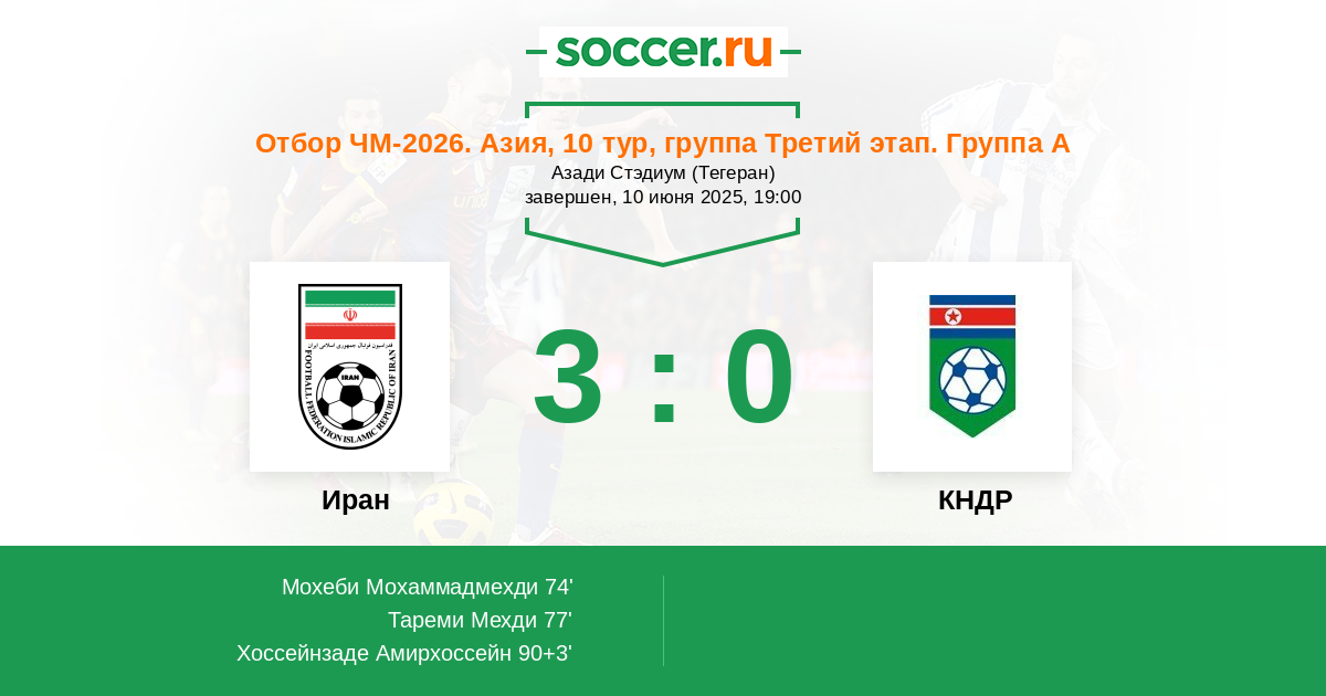 Протокол матча Иран против КНДР
