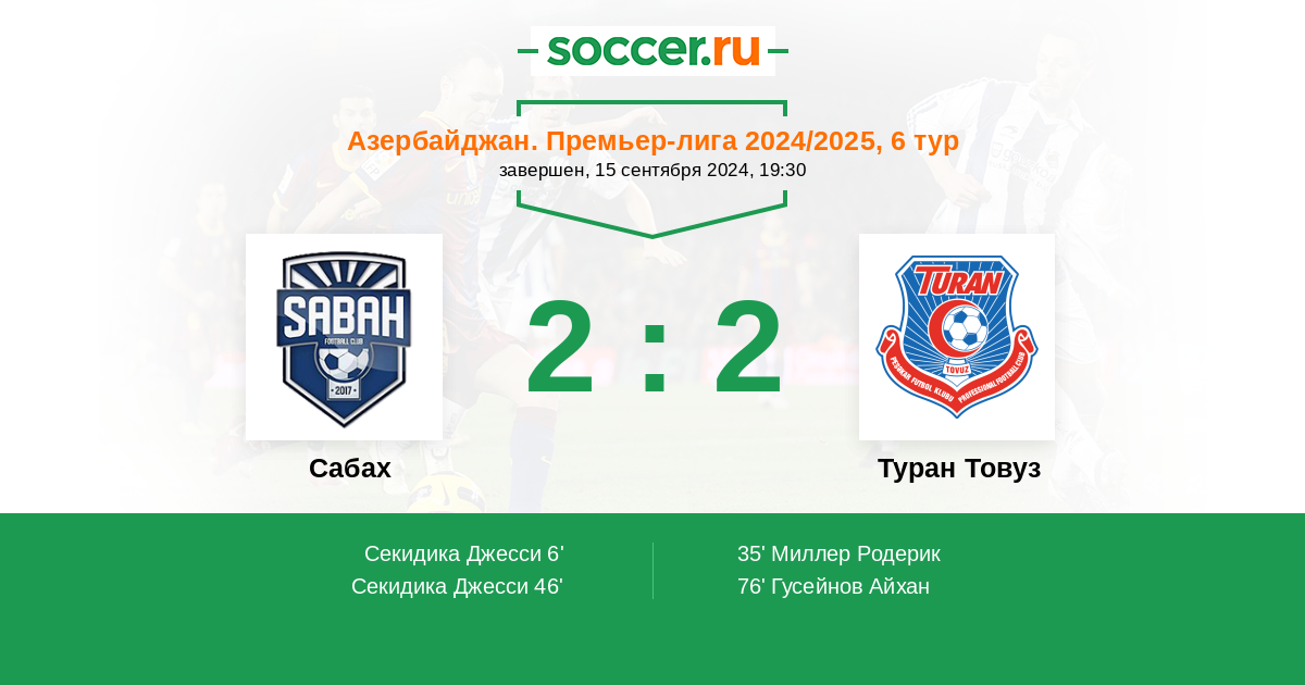 Протокол матча Сабах против Туран Товуз